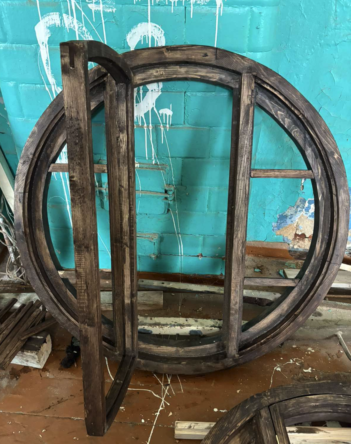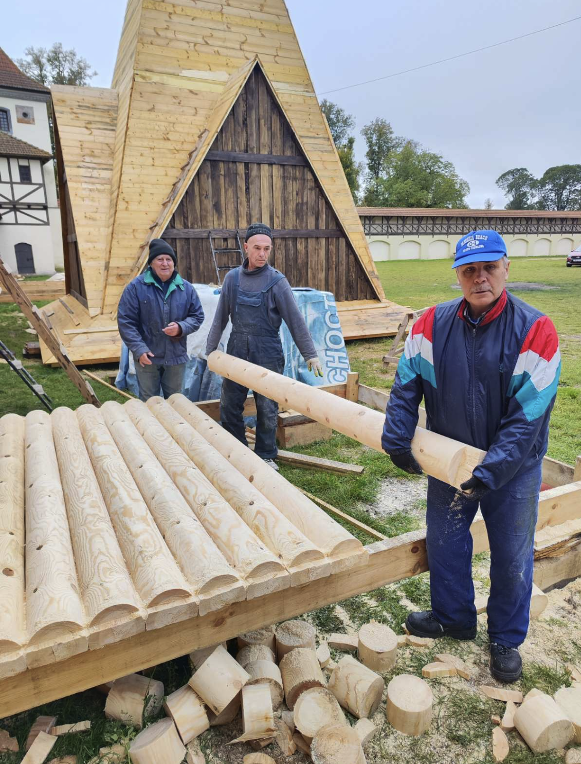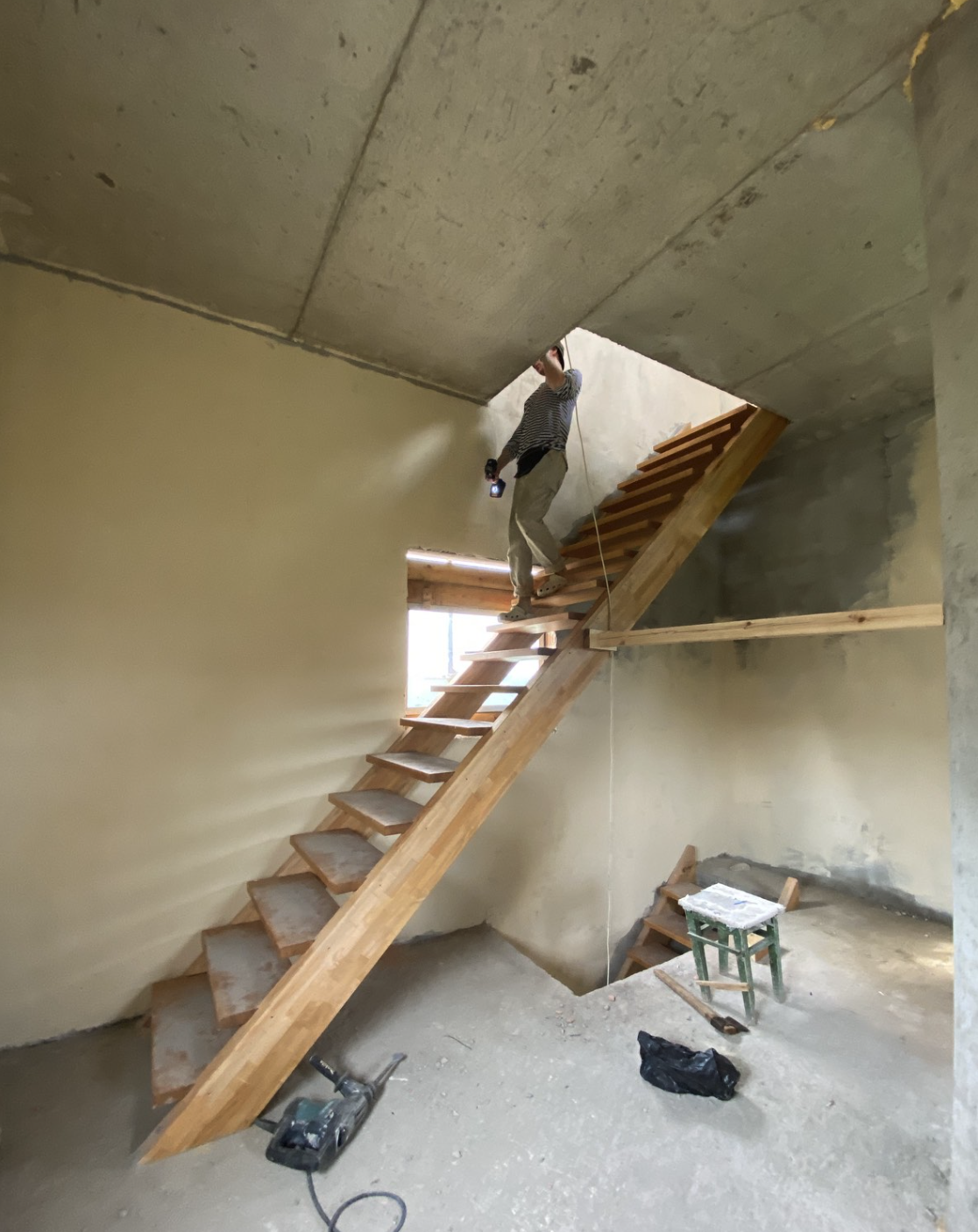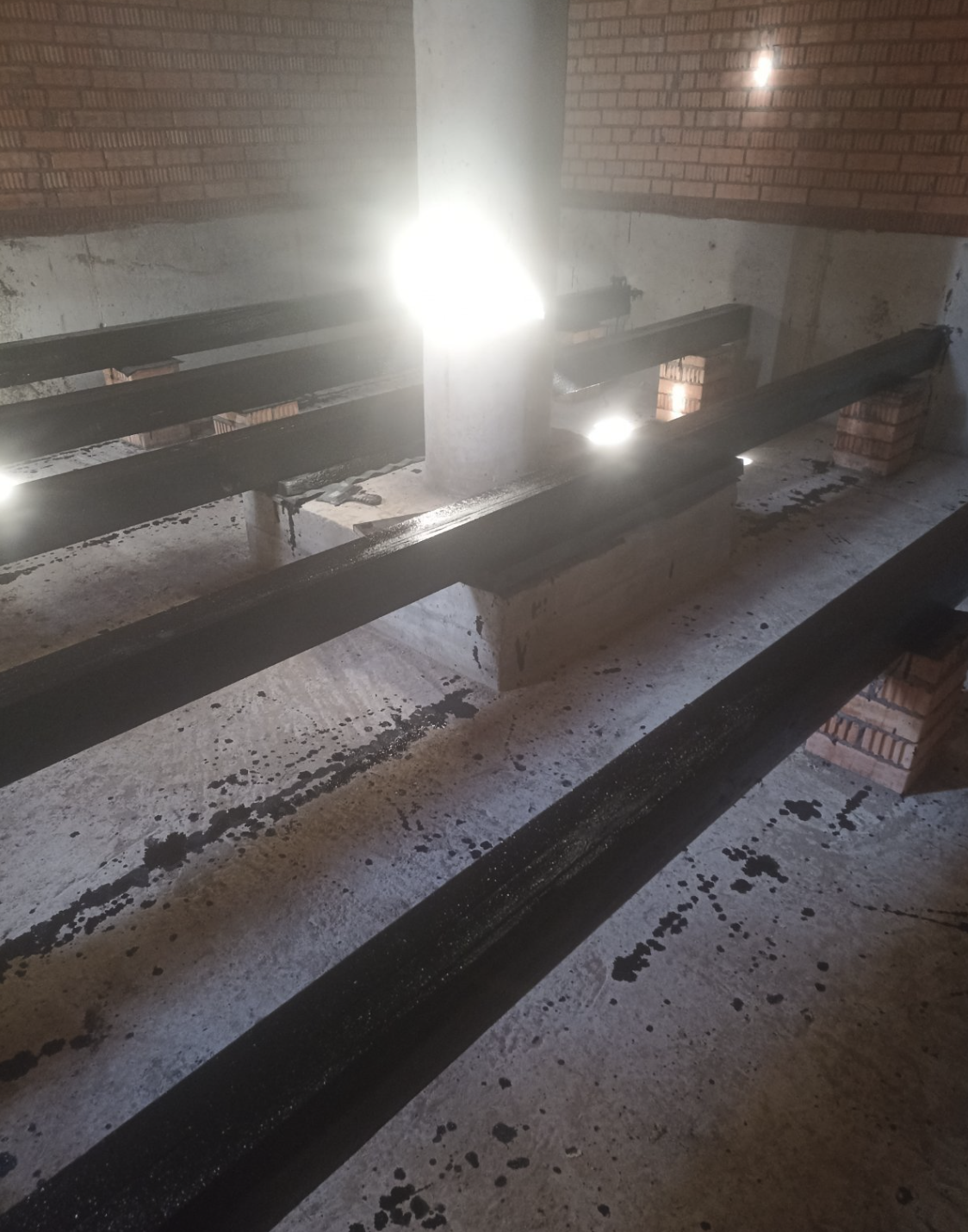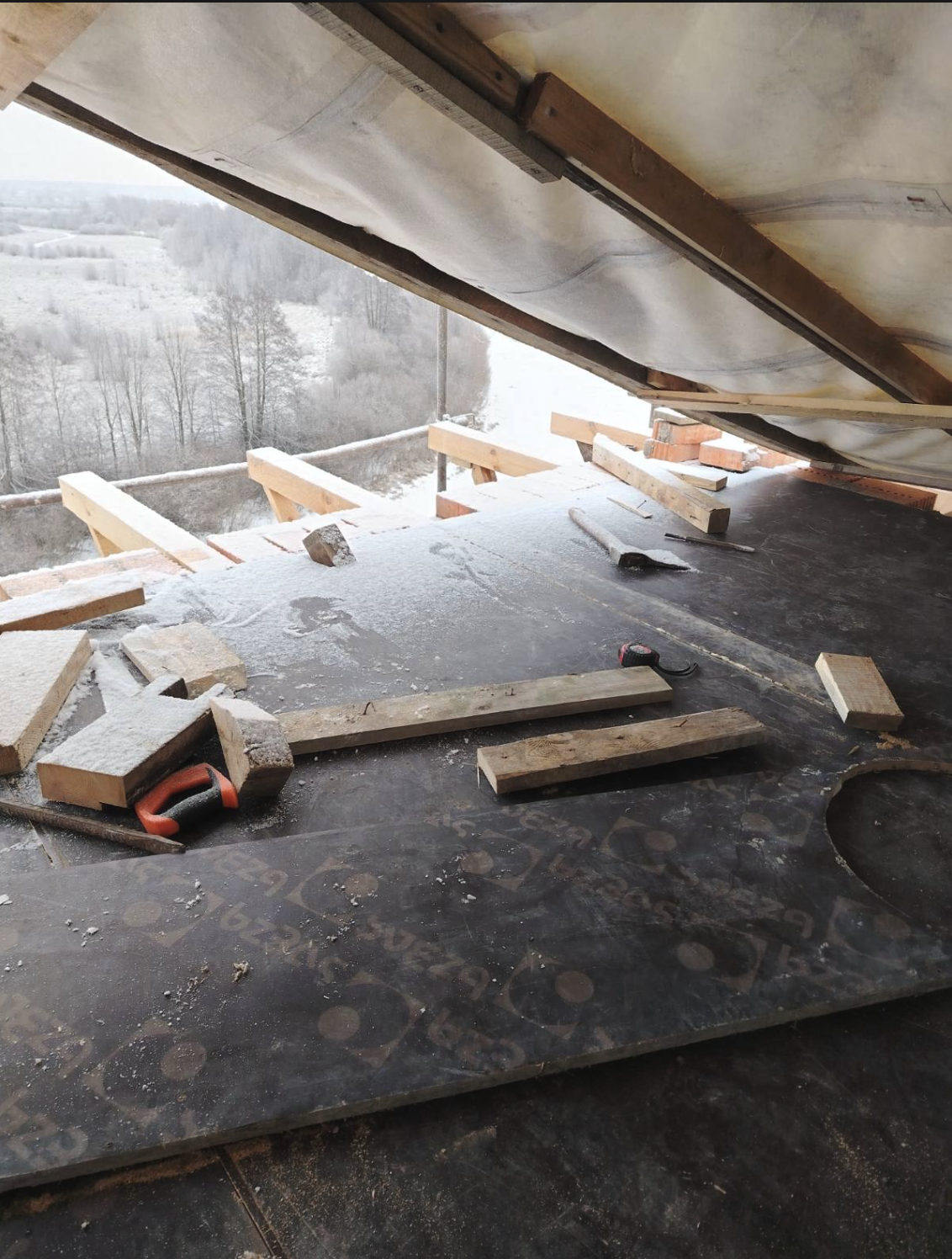 Выполнены лекала и опалубка лесов, изготовлен арочный кирпичный свод, искользовато 3000 кирпича, вес арки более 17 тонн. Снята удерживающая конструкция опалубки лесов. Лекала и подшивка легко снимется в 2023 г. Аналогичный свод нами выполнен в подвальном помещении этой башни в 2020 г.