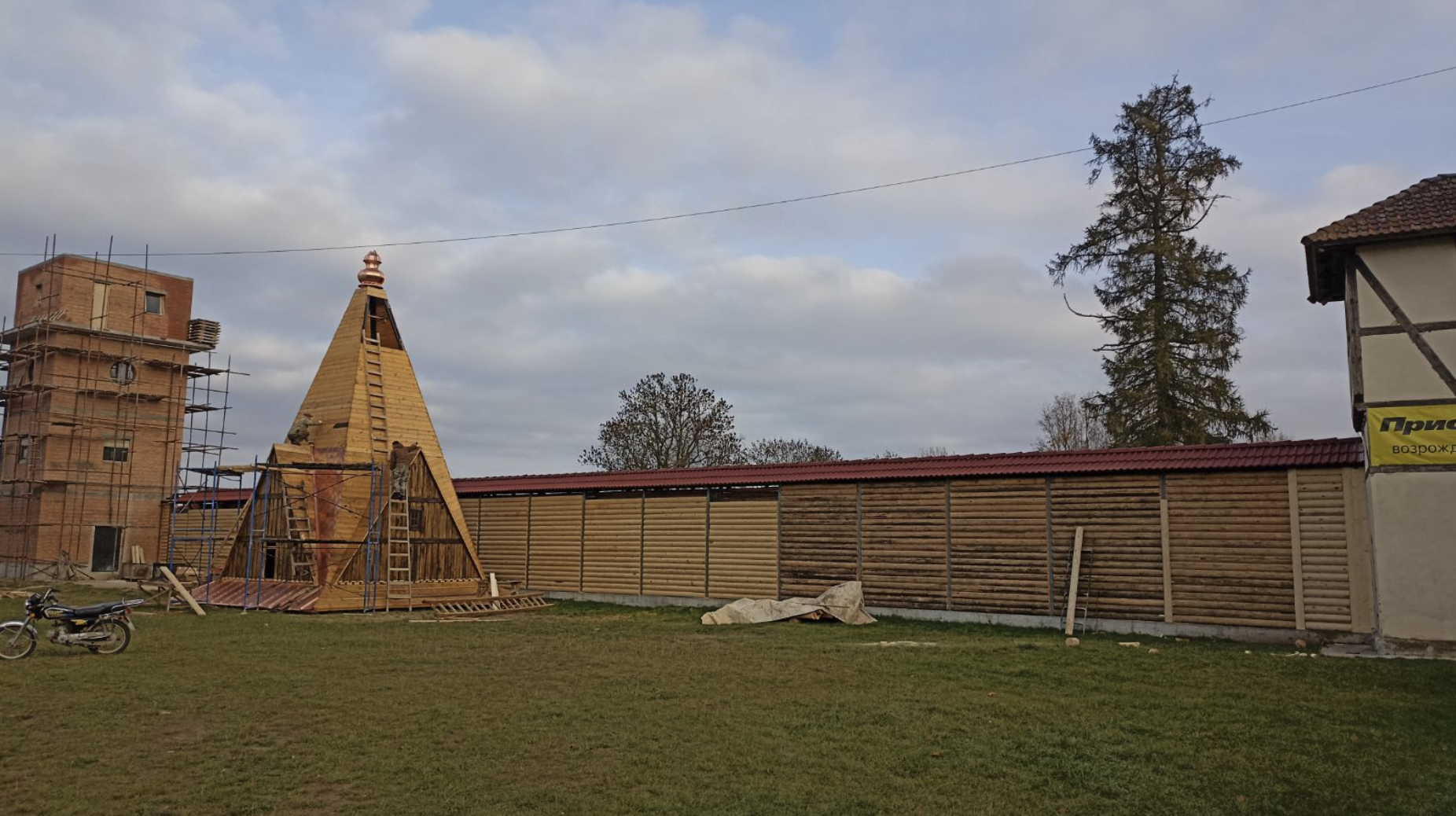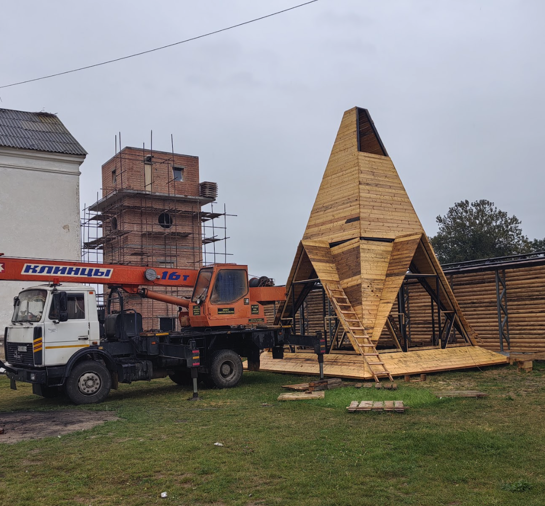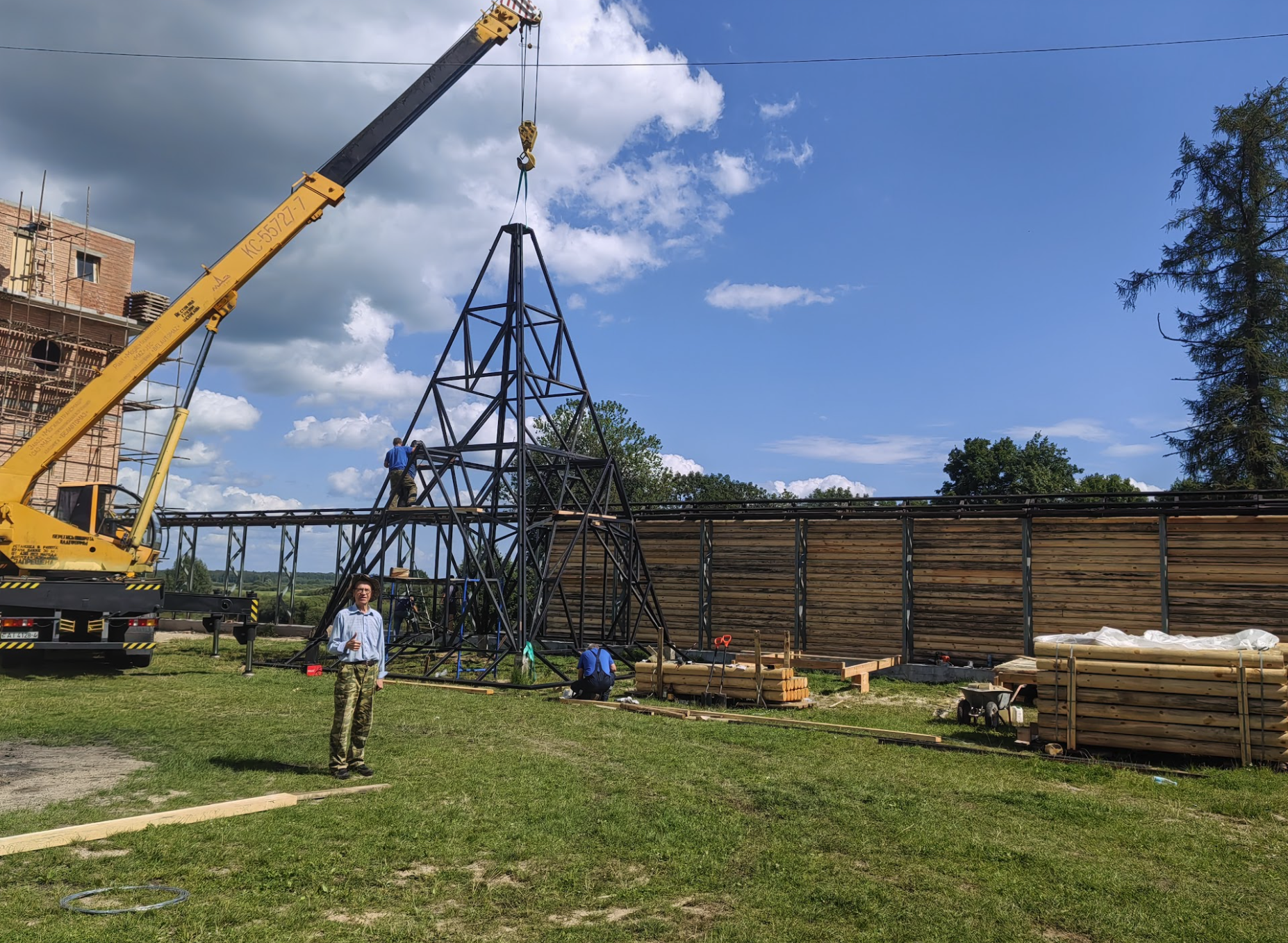 2022 г. Завершены облицовочные работы и сборка купола,  выполнен контрольный подъем, в сборе вес купола 5 тонн.