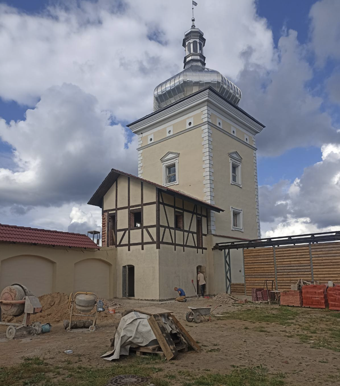 Рабочая встреча 06.25.2022 с ответственными работниками Новогрудского РИК (заместители председателя по строительству и культуре),  руководством ООО «Моноракурс»,  разработчик строительного проекта второй очереди основным элементом которого является Восточная башня и членами правления фонда (1-е фото).
